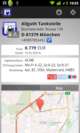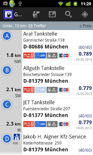 विवरण में 6500 पेट्रोल स्टेशनों (जर्मनी) से अधिक वर्तमान ऑनलाइन डेटाबेस