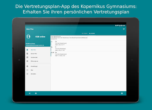 Mit der App "KGB online" können Sie als Schüler/Lehrer/Elternteil des Kopernikus Gymnasiums Blankenfelde-Mahlow ganz bequem den Vertretungsplan auf ihr Android-Smartphone oder Tablet laden.