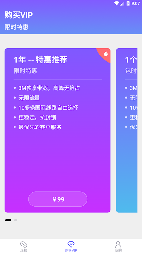 Kylin VPN的亮点 【免费】 每月免费增送300M流量,纯公益项目,请节约使用。 【稳定】 我们在全球部署了上百台服务器,采用负载均衡技术,可用率达99.999%。 【高速】 采用企业级BPG线路,配合最优路径智能选择算法,麒麟VPN的速度和稳定性都是非常优秀的。 【无广告】 去除繁乱的广告,界面清新美观,强迫症者必选VPN。 【 保护隐私】 安装后一键连接,无需填写任何注册信息,同时强大的SSL加密技术与IP隐藏,让您完全匿名,安全无忧。 快来体验一下Kylin VPN吧!如果你喜欢我们,不要忘记给我们5星以资鼓励!