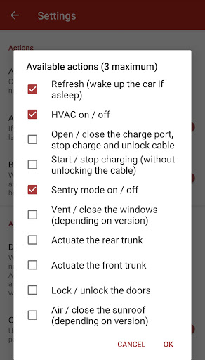 It also offer some shortcuts such as preheating the car, turn on HVAC, unlock the charge port quickly, manage Sentry mode. In addition, the actions are customizable and you can choose your shortcuts! You also can create shortcuts for these actions and place them on your main screen.