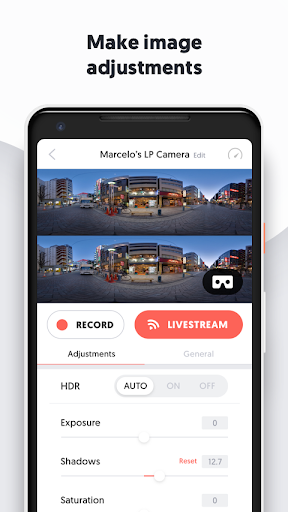 - Watch 360° live preview of camera stream on your phone or VR headset