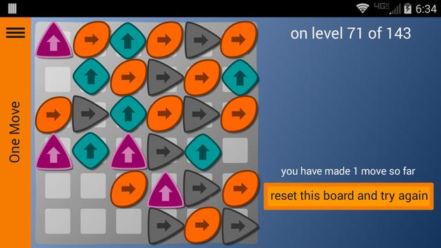 One Move is a tile game where like-colored tiles are cleared from the board when they are moved or slide next to one another.