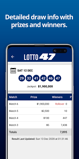 Lotto 47, Powerball, Mega Millions and Fantasy 5 also include a full breakdown displaying the number of winners and amount paid out for each prize level.