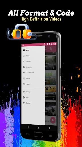 * Play a wide media file formats, like DivX, M4V, MKV, MOV, MP4, WMV, MPEG, MP3  and more
