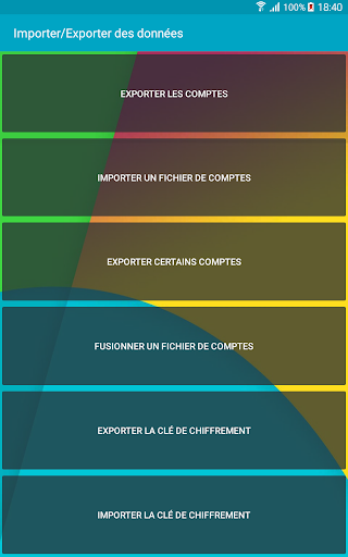 Il est possible d'exporter/importer tout ou partie des comptes ainsi que la clé de chiffrement.