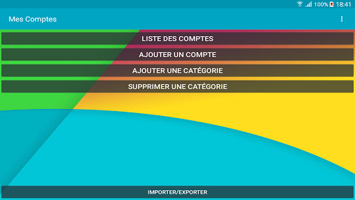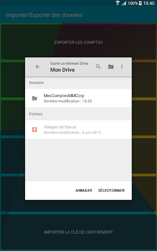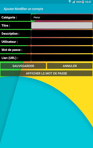 Cette application permet de sauvegarder ses différents comptes (identifiants, mots de passe, description, URL) sur Google Drive.