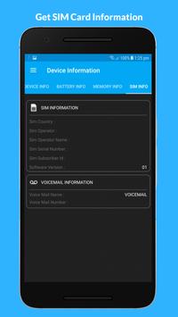 like SIM country, SIM operator, SIM operator name, SIM serial number, SIM subscriber id, SIM software version, Voice mail information.