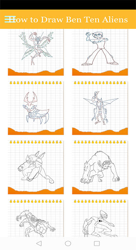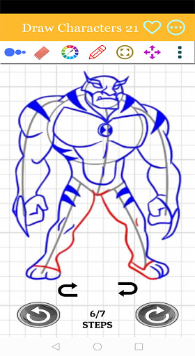 How to Draw Ben Ten Aliens is an app where even non professional can learn to draw Ben Ten Aliens with our step by step guide. Each Character has 5 to 15 steps to complete. you can also use tools to draw characters within app, tools like pencil, eraser, move, zoom, color and more.