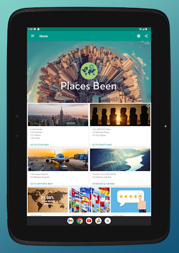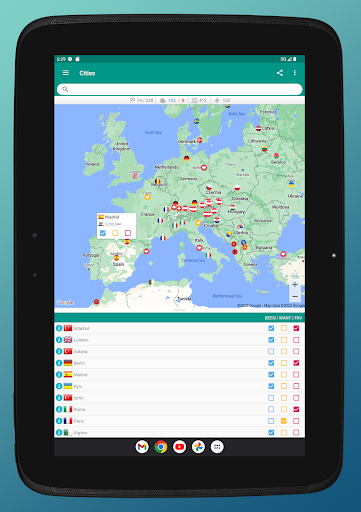 • In Places Been you will tag cities and the app will automatically keep track of the visited countries for you.