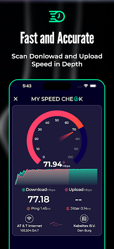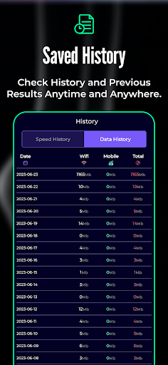 Historical Data: Access your speed test history and monitor your internet performance over time. Compare your download and upload speed, and ping rate to track improvements and get access to the history of this internet speed checker app.