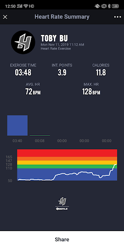• View real time heart rate displayed in colored heart rate zone