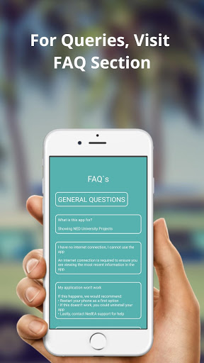 The NedEA app shows the Undergraduate, Postgraduate and Final Year Projects (FYP's) of all the subsequent teaching departments of the NED University. If you are the student of NED University so you can contact at your Department to upload your project at NedEA App, your project will be uploaded after subject of verification. All the requirements for uploading the project are described in the NedEA App.