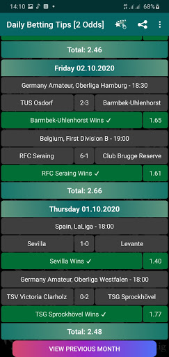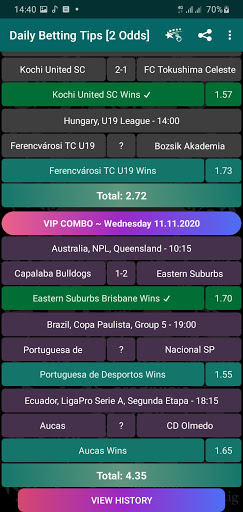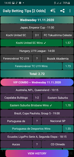 This app is an handy tools for football lovers to know the degree to which a team stands in winning match. It enlist two to three matches daily and predicts if a team stands any chance of winning.