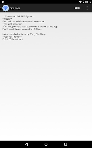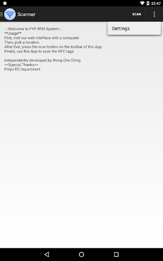 This app is able to scan NFC tags and report it to the specified database.