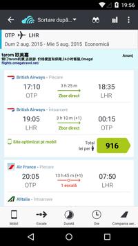 Trebuie să găseşti zboruri ieftine când eşti în mers? Economiseşte bani şi timp cu Skyscanner. Datorită acoperirii noastre largi, poţi căuta în milioane de zboruri de la sute de companii aeriene din întreaga lume, beneficiind de costuri scăzute, precum şi de rezervările potrivite pentru a găsi zborul perfect la cel mai mic preţ. După ce ai găsit zborurile, noi te conectăm la compania aeriană sau la agenţia de voiaj pentru a cumpăra direct şi a obţine cel mai bun preţ, totul cu numai câteva atingeri ale dispozitivului.