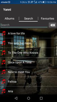 Yanni piano is an application that include all yanni songs and albums so you can play it and listen it offline