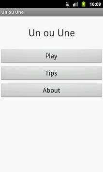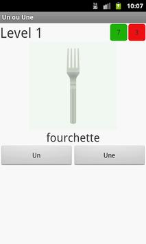 Select a level and start playing. For each level, you have to pick between "un" (masculine) or "une" (feminine) for 30 french nouns.