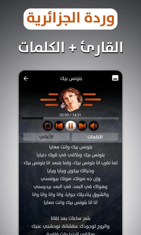 • توضيح هام: نظرا لطول العديد من الأغاني فأننا اضطررنا لأن نرفق البرنامج ب9 أغاني فقط وذلك لأن متجر جوجل لا يسمح بالتطبيقات كبيرة الحجم، شكرا لتفهمكم