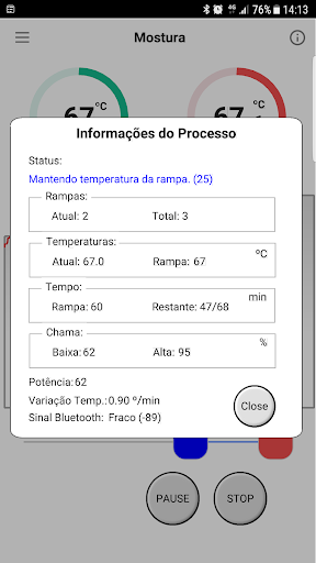 Alerts werden über Nachrichten, Benachrichtigungen und Tonwarnungen ausgestellt. Es ist notwendig, dass die Anwendung während des gesamten Prozesses geöffnet ist. Es reicht aus, dass es sich im Hintergrund befindet, und es wird die Herstellung Ihres Biers überwacht und kontrolliert.