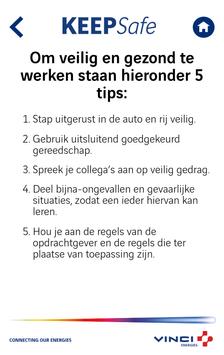 Deze KEEPSafe app is beschikbaar voor alle VINCI Energies medewerkers, voor persoonlijk gebruik, om hen te helpen bewust en alert te zijn op hun werkplek voor gevaarlijke situaties of bijna-ongevallen.