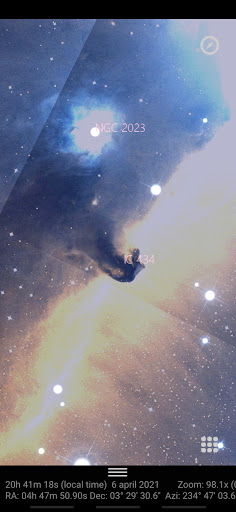 - Each object has a detailed card which is updated in real time (distances, right ascension, declination, azimuth, altitude and magnitude).