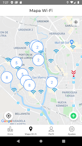 Install our app and discover all the access points in your neighborhood on our Wi-Fi map.