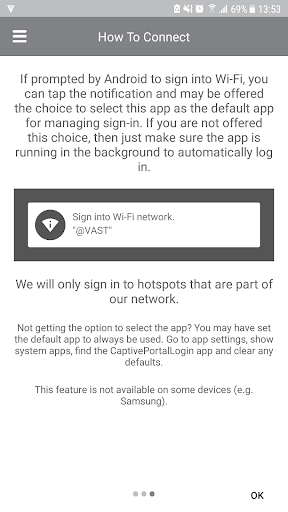 - Quickly and seamlessly connect to the VAST network via WISPr authentication.