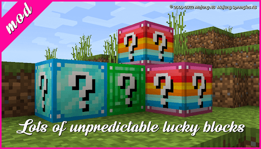 So that players do not get bored, we decided to add lucky block for minecraft to game. After all, it is lucky blocks mod mcpe that can be introduced into the game randomly. What are these lucky block for mcpe? These are yellow lucky block mod for mcpe with a question mark. Sometimes lucky block mod for minecraft pocket edition are found in biomes, but this is very rare. As soon as player breaks lucky blocks mod, some kind of random action occurs. It can be either a good action or a bad one. It all depends on luck and randomness. Breaking lucky blocks mod for minecraft is very fun. But you can also get very useful items - you can become owner of redstone or armor mods set. But if you're unlucky, you might come across a creeper or something even worse from lucky craft mod. Therefore, you should not open a mcpe lucky block mod next to your house. After all, you will never be able to guess what surprise will await you from next minecraft lucky blocks mod!
