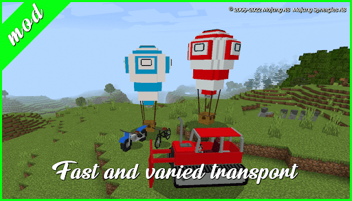 And we could not leave you without vehicle mod for minecraft pe, so that you can quickly get to your destination. With car mods for minecraft you can very quickly move to the place you need. Choose any vehicle for mcpe and go on your journey. You will have both a car mod for minecraft and many other transport mods. It will be such a vehicles mod for mcpe as a bicycle, a motorcycle and even a balloon! Now moving around the game world for you and your friends will no longer be a problem! You will be able to move at any time and change minecraft cars mod to another one. And do not forget to fill up your car mod for mcpe with gasoline so that your trip does not end ahead of time.