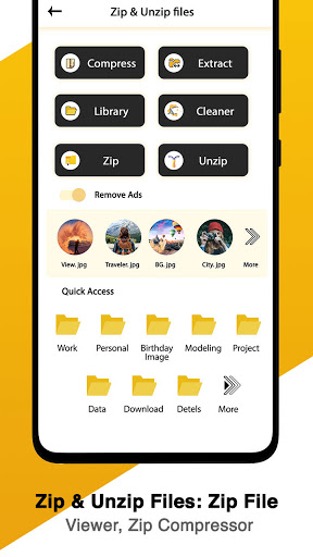 Easy zip tool-All files compressor can zip and unzip your files and Easy zip tool-All files compressor. You can compress files and make them shrink with one click. Extract all your zip files and rar files with this application.