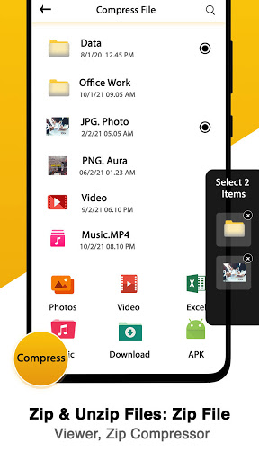 You can make your files and folders size more shrink and reduced its size easily. Easy zip tool-All files compressor can zip unzip your files. Compress your all your large files with one click.