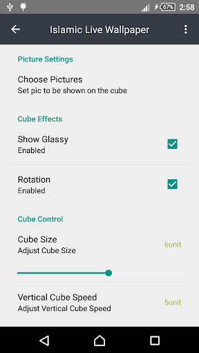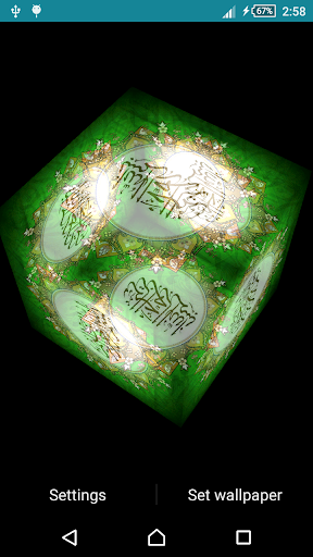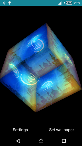 This Islamic Live Wallpaper features a rotating 3D photo cube showing pictures from selected image.