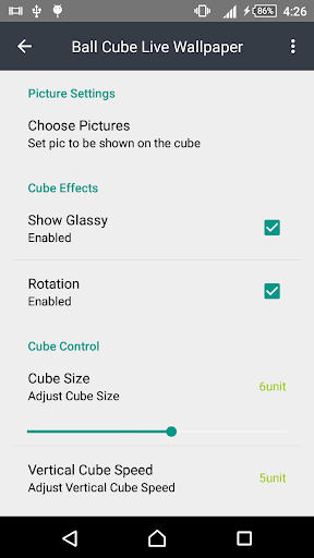 This Ball Cube Live Wallpaper features a rotating 3D photo cube showing pictures from selected image.