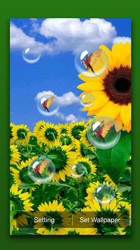 Sunflower Live Wallpaper based on High quality animation and very realistic bubble floating on background which is fully interactive