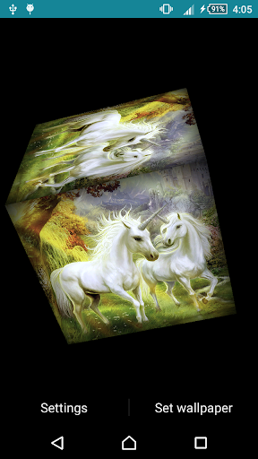 This Unicorn Live Wallpaper features a rotating 3D photo cube showing pictures from selected image.