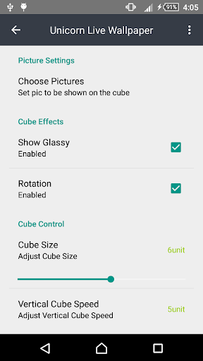 This Unicorn Live Wallpaper displays cubes of six images from selected image.