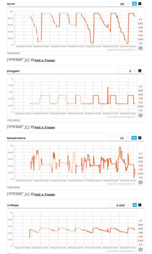 Afterwards, and whenever you feel like it, you can go to your Xively feed online and look at, for instance, your battery charge cycles.