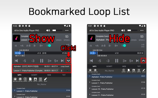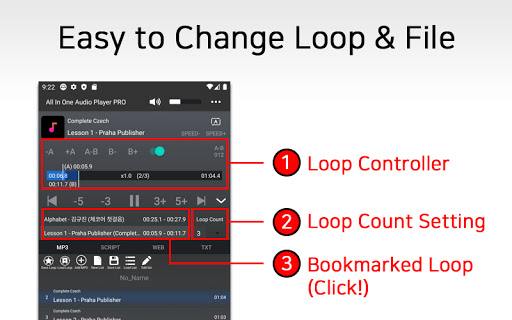 This Audio Player is developed for high efficiency in learning new languages by providing Essential functions for learning languages in One app.