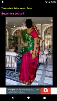 Select a Saree, select your photo from gallery, adjust your face and save. Done!