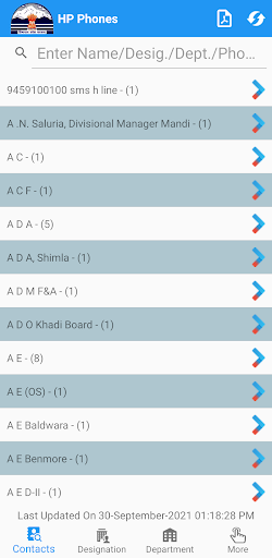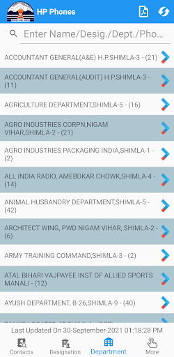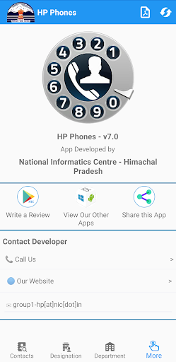 The HP Phones App contains about 8000 phone numbers of Government officials in Himachal Pradesh. The App provides features to search any number using free text/number search on name, designation and department. The Designation and Department wise search is also available. Reverse search of a phone number is by entering any number. The selected number of the officials can be dialed directly through the Dialer of mobile device of the user.