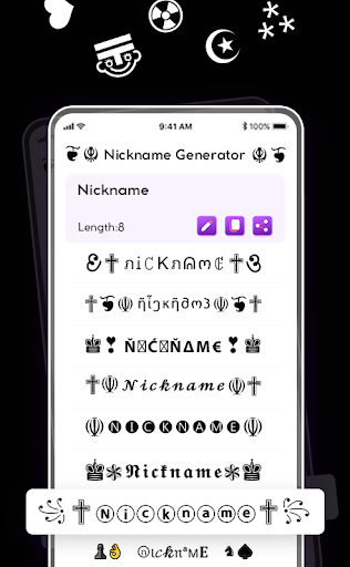 This nickname creator app is also used as a nickname generator ml. Nickname generator for 2022 contains a bunch of new characters, stylish fonts, cool symbols, and a lot of designs. To distinguish yourself from other players you can create your own name style. Customization is the basic functionality of this nickname generator. A text generator for a nickname is used to personalize your id. By using different fonts and patterns like nicknames you can decorate your nickname. Fancy text symbols app has the capability to provide the nickname for the squad. Through customization and editing, you can design any name for your id by stylish nickname generator app. Writ in different calligraphic, fonts styles, and symbols you can personalize and create nickname.