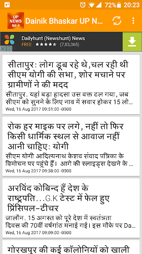 All UP news stories are live updated from Dainik Bhaskar news paper's website via RSS feed.