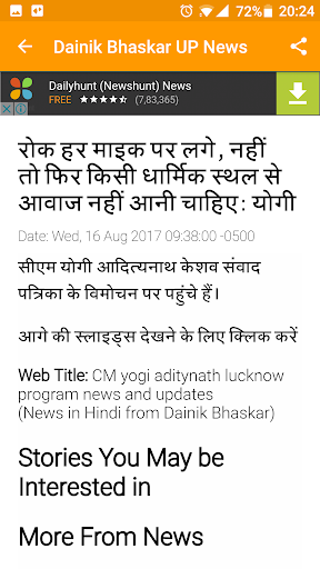 The best UP news in Hindi mobile application. It's easy to use & share, Live daily UP News updates on your finger tips while roaming anywhere. You can easily get Uttar Pradesh Hindi News on your mobile or tablet. Get the latest headlines and complete news reports from Uttar Pradesh. stay updated with latest news from official news paper's channel - Dainik Bhaskar.