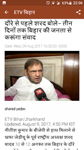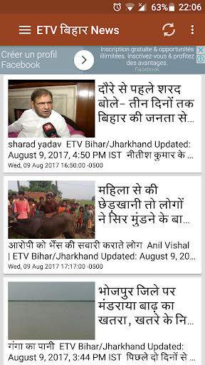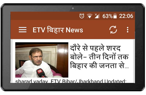A completely free Bihar Hindi News app for your android smart device directly from ETV news channel's website, stay updated with latest News stories from their website. Read various category articles on politics, business, cultural, entertainment, tours & travels, sports and many others.