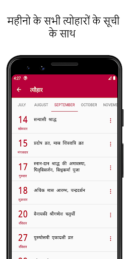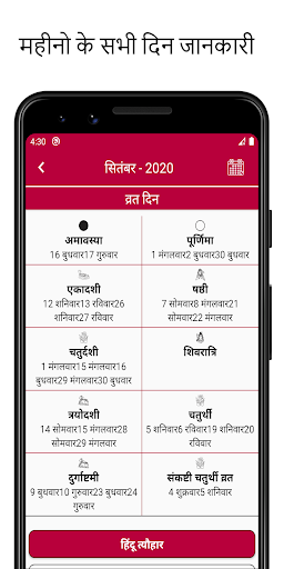 2022 Hindi Calendar with 2023 Panchang offline calendar app has the complete information like Holidays, Festival list, Subha Muhurat and fasting days.
