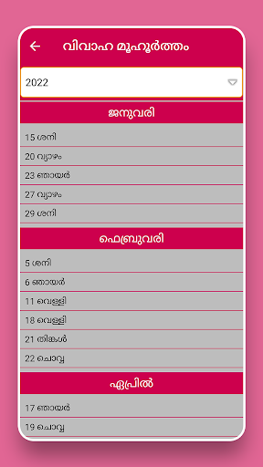 2022 Malayalam Calendar app works in offline mode, as you can see Nakshatra, Thithi, Muhurtham, Rahu Kalam, Gulika Kalam, Udayam, Asthamayam and Namaskarasamayam.