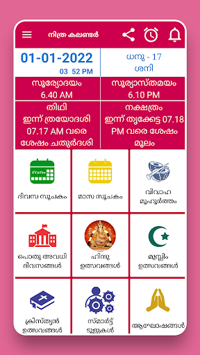 2022 Malayalam Calendar with 2022 Malayalam panchangam calendar app contains all details like 2022 holidays list, festival list, 2022 panchangam details, shubh muhurat days list for people speaking malayalam across the world.