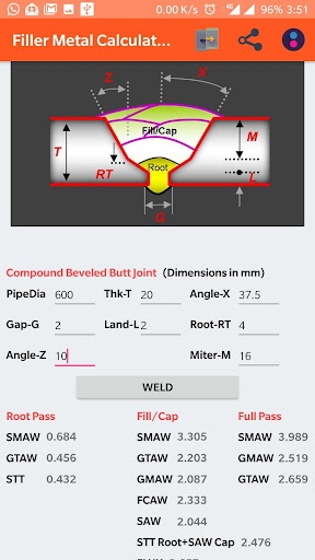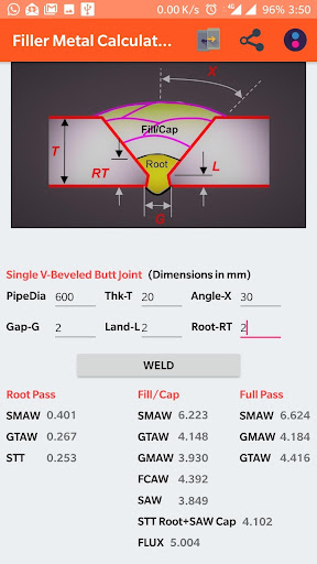 This application will give you detailed Volume calculation of Filler Metals required to complete a Weld Joint.