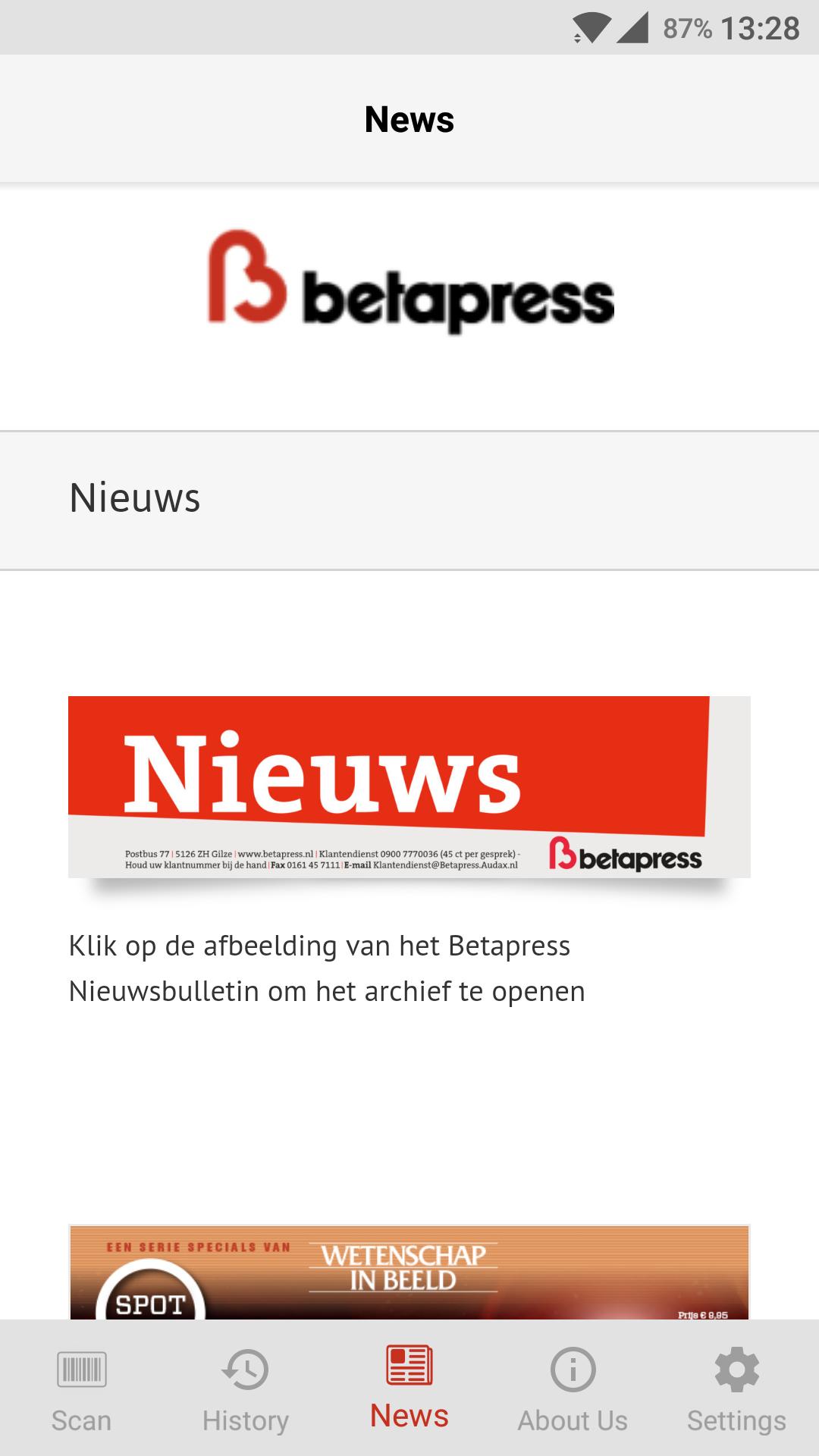 With the use of the Betapress app you can gain more insight about the return period and status of the magazine by scanning the EAN code / barcode of the magazine.