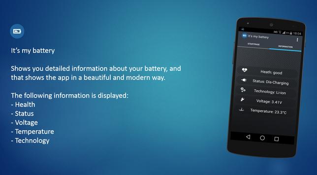 With It's my battery easily see the status of your battery, for example, you can see the temperature, health and the precentage.